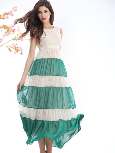 A-line Vintage Sleeveless Silk Paneled Maxi Dress Discounted at only: US$ 46.99