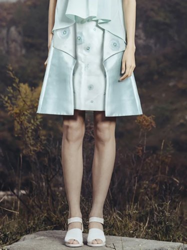 Aqua Paneled Polyester Statement Abstract Midi Skirt Discounted at only: US$ 305.00