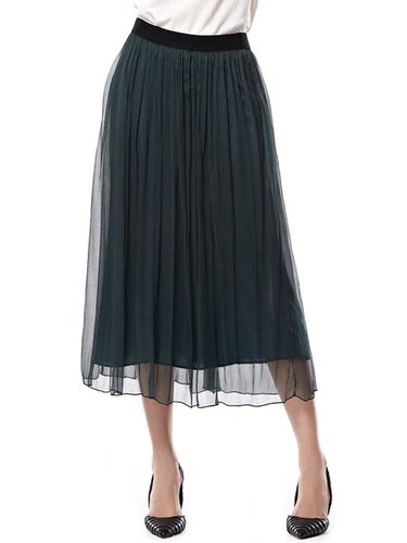 Army Green Casual Silk Midi Skirt Discounted at only: US$ 78.00