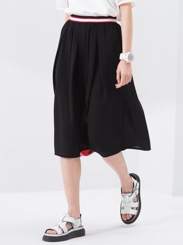 Black Pleated Casual A-line Plain Midi Skirt Discounted at only: US$ 58.00