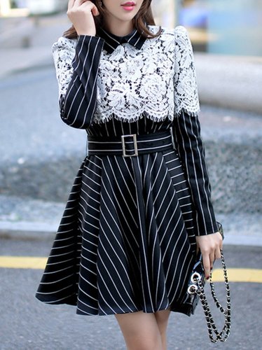 Black V Neck A-line Long Sleeve Mini Dress