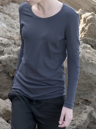 Blue Casual Viscose Long Sleeved Talus Top