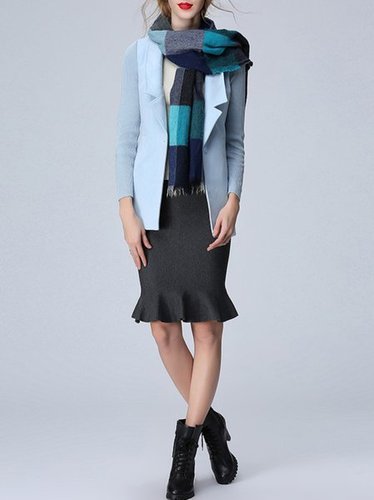 Blue Polyester Paneled Long Sleeve Coat Discounted at only: US$ 88.00