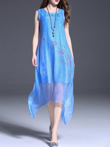 Blue Silk Elegant Midi Dress Discounted at only: US$ 112.00