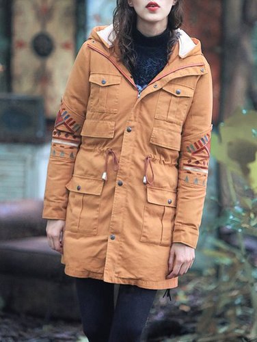 Brown Hoodie Long Sleeve Down Coat Discounted at only: US$ 168.00