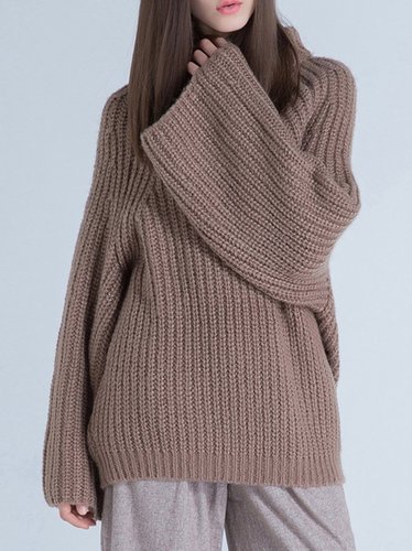 Coffee Raglan Sleeve Turtleneck Wool Blend Sweater Discounted at only: US$ 53.99