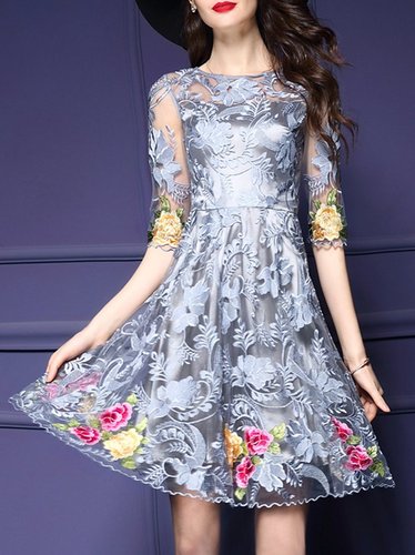 Gray Floral Mesh Embroidered Elegant Midi Dress Discounted at only: US$ 96.00