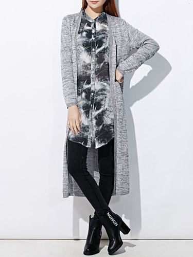 Gray Knitted Long Sleeve H-line Plain Cardigan Discounted at only: US$ 116.00