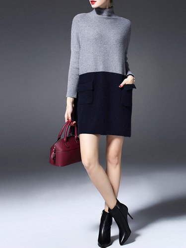 Gray Turtleneck Cashmere Raglan Sleeve Sweater Dress Discounted at only: US$ 148.00