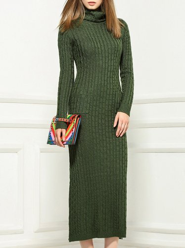 Green Sheath Turtleneck Knitted Long Sleeve Midi Dress Discounted at only: US$ 73.99