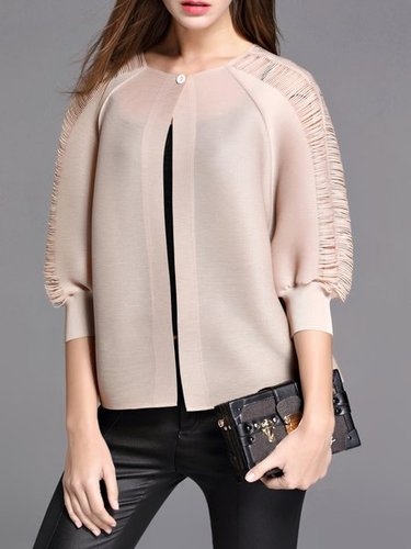 Pierced Crew Neck 3/4 Sleeve H-line Simple Cropped Jacket Discounted at only: US$ 68.00
