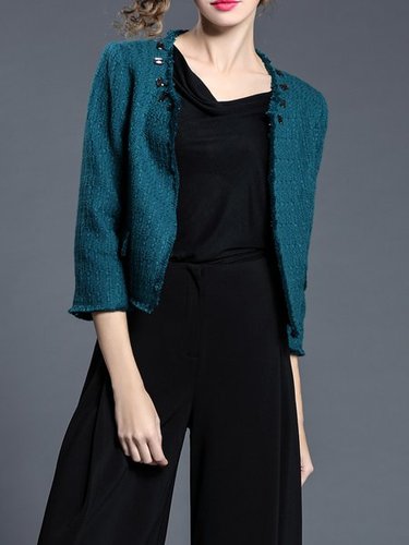 Plain Polyester 3/4 Sleeve Casual Cropped Jacket Discounted at only: US$ 68.00