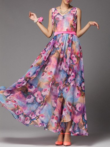 Purple A-line Sleeveless Chiffon Maxi Dress