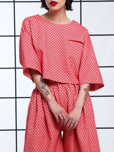 Red Casual Cotton Checkered/Plaid Crew Neck Blouse Discounted at only: US$ 164.00