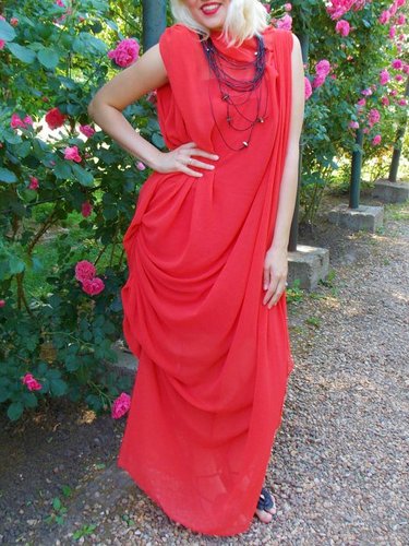 Red Sleeveless Hand Made Polyester Shift Maxi Dress Discounted at only: US$ 99.00