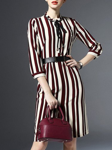 Red V Neck Work Polyester Midi Dress