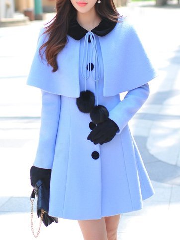 Sky Blue Wool Blend A-line Buttoned Long Sleeve Coat Discounted at only: US$ 166.99