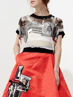 White Batwing Crew Neck Printed Abstract Short Sleeved Top Discounted at only: US$ 108.00