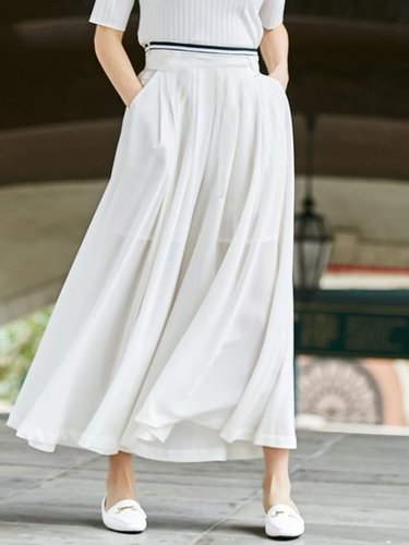 White Polyester Plain Casual Wide Leg Pants Discounted at only: US$ 56.00