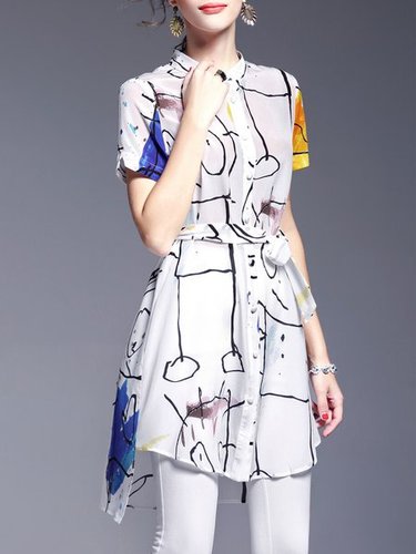 White Printed Silk Casual Asymmetrical Tunic
